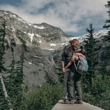 Hiking up a mountain or to a waterfall